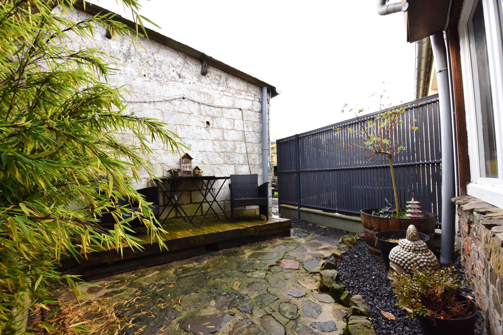Garage, cave voutée, terrasse couverte et jardin clos.